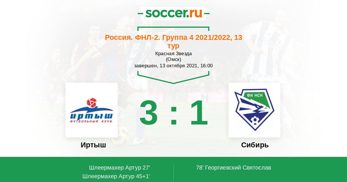 Протокол матча Иртыш против Сибирь