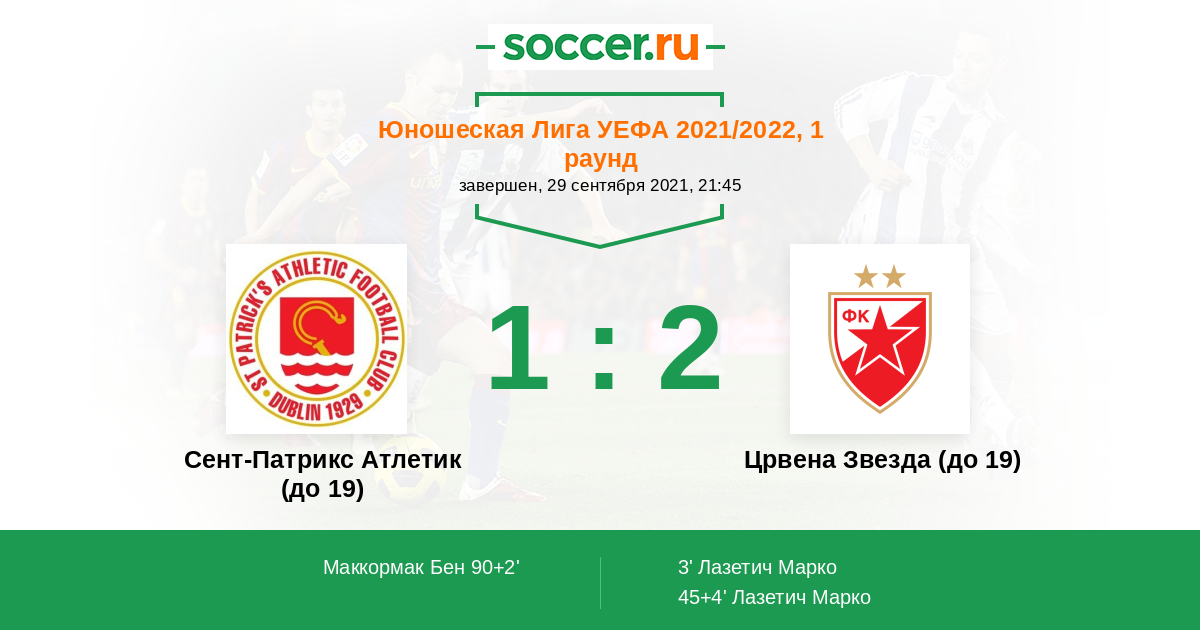 Протокол матча Сент-Патрикс Атлетик (до 19) против Црвена Звезда (до 19)