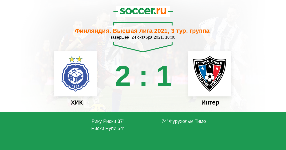 74' (2:1) Фурухольм Тимо (15) (Калльман Бенджамин (10))