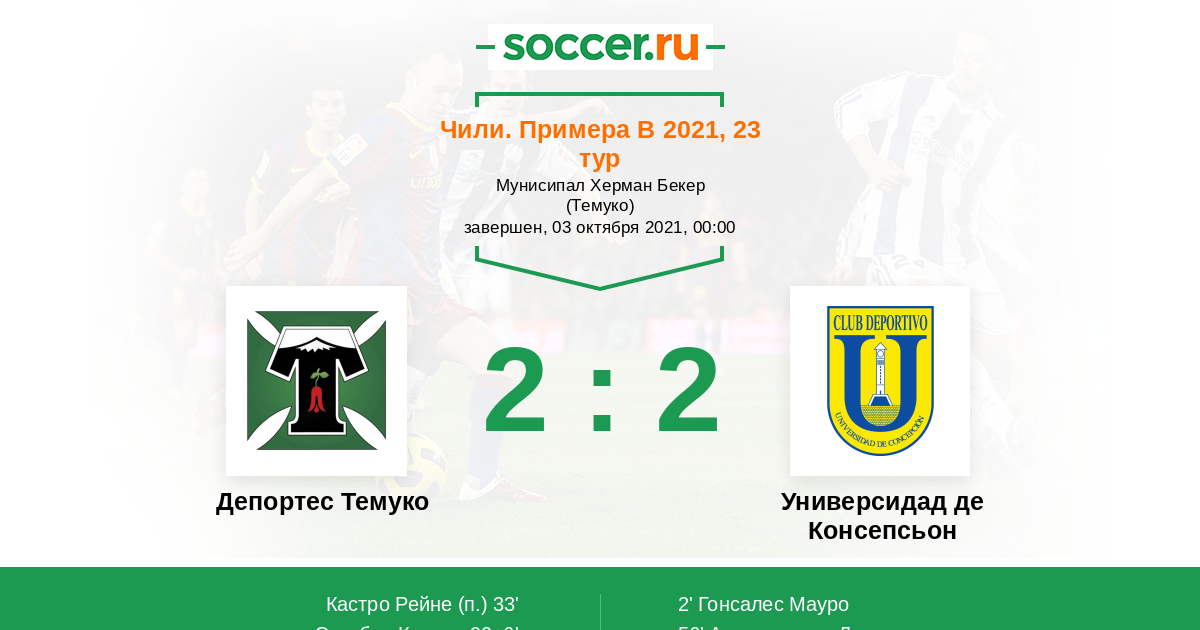 Протокол матча Депортес Темуко против Универсидад де Консепсьон