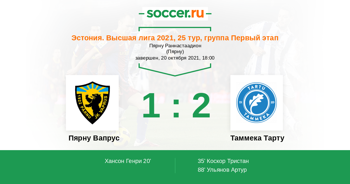 Протокол матча Пярну Вапрус против Таммека Тарту