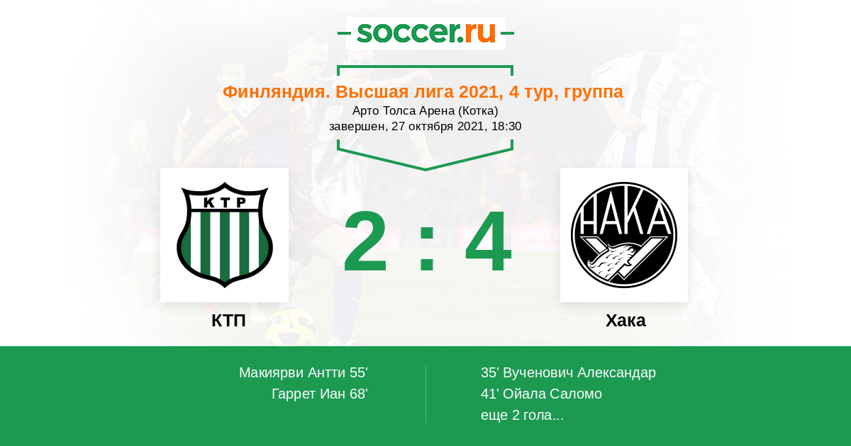 35' (0:1) Вученович Александар (8) (Лайне Янне-Пекка (17))