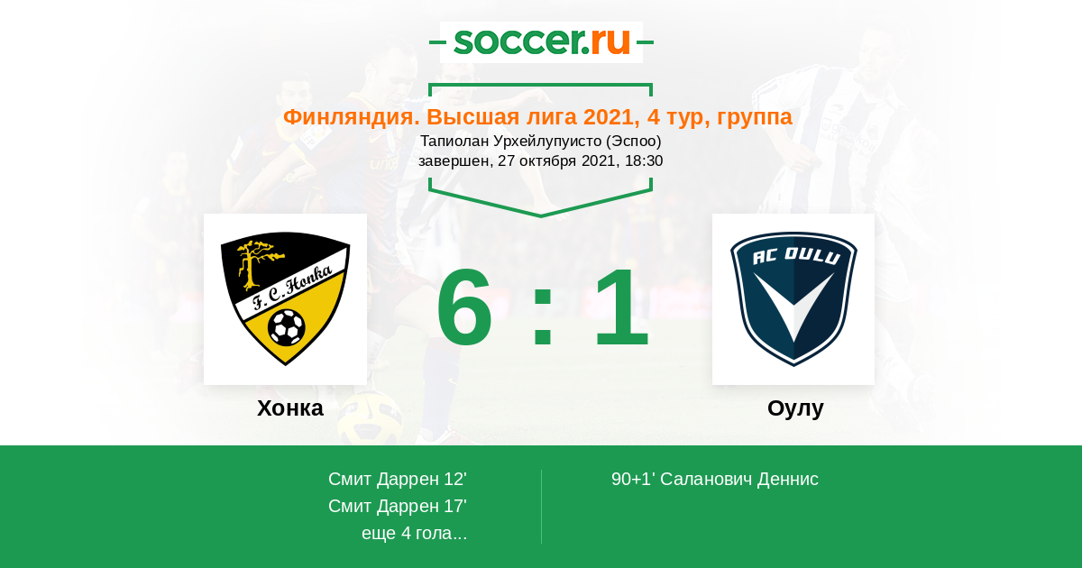 Протокол матча Хонка против Оулу