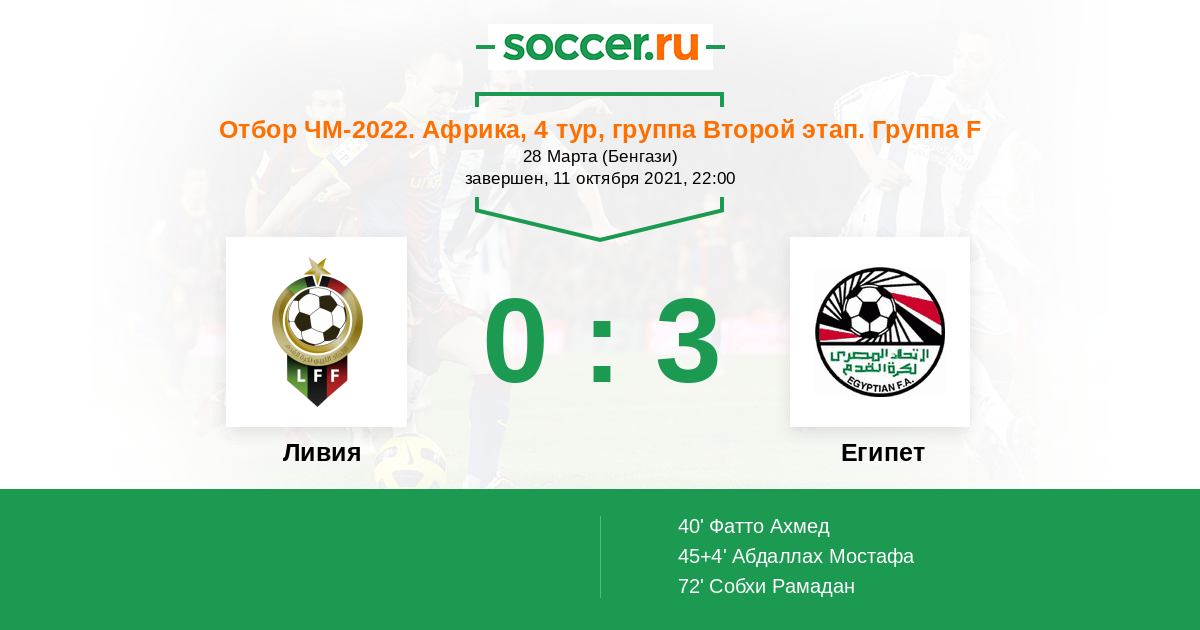 Протокол матча Ливия против Египет