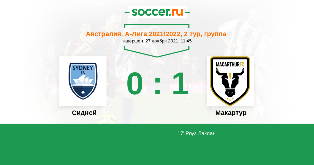 Протокол матча Сидней против Макартур