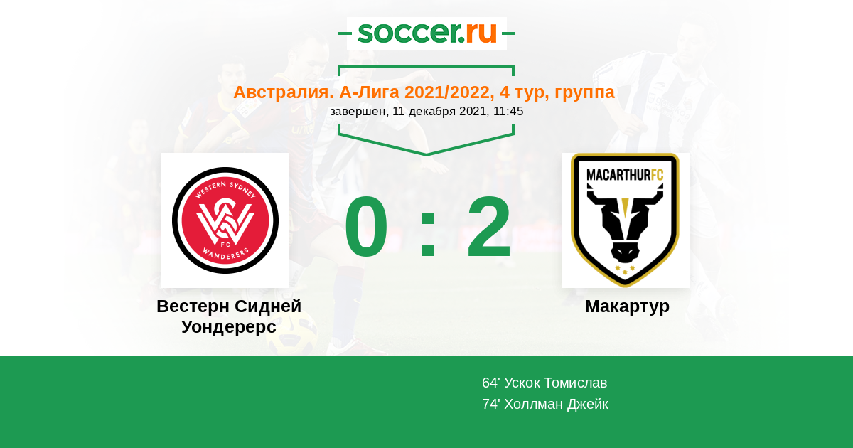 Протокол матча Вестерн Сидней Уондерерс против Макартур