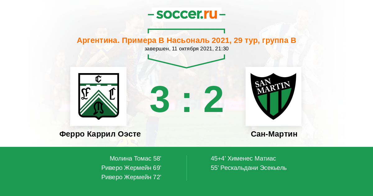 Протокол матча Ферро Каррил Оэсте против Сан-Мартин