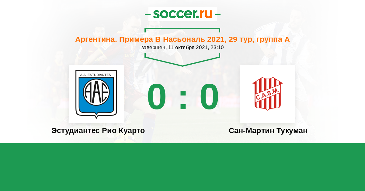 Протокол матча Эстудиантес Рио Куарто против Сан-Мартин Тукуман