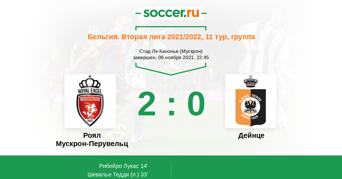 Протокол матча Роял Мускрон-Перувельц против Дейнце