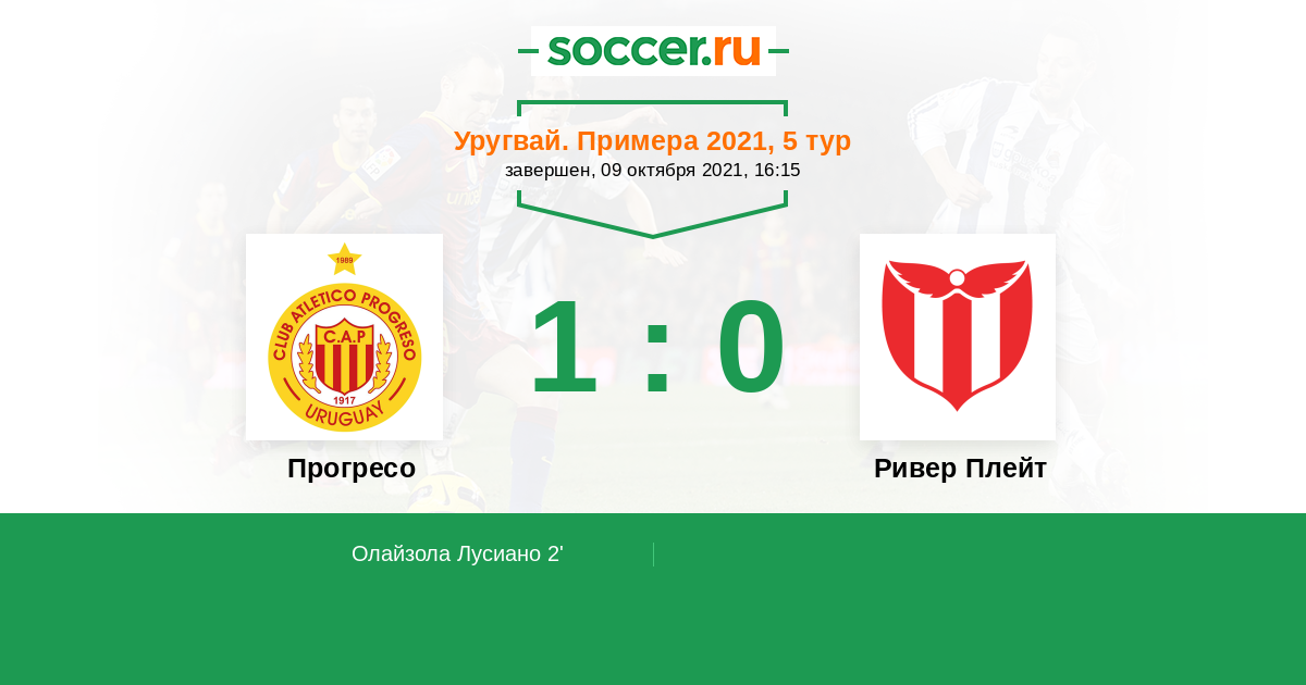 Протокол матча Прогресо против Ривер Плейт