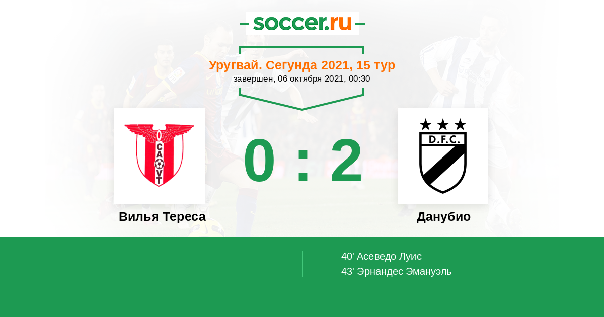 Протокол матча Вилья Тереса против Данубио