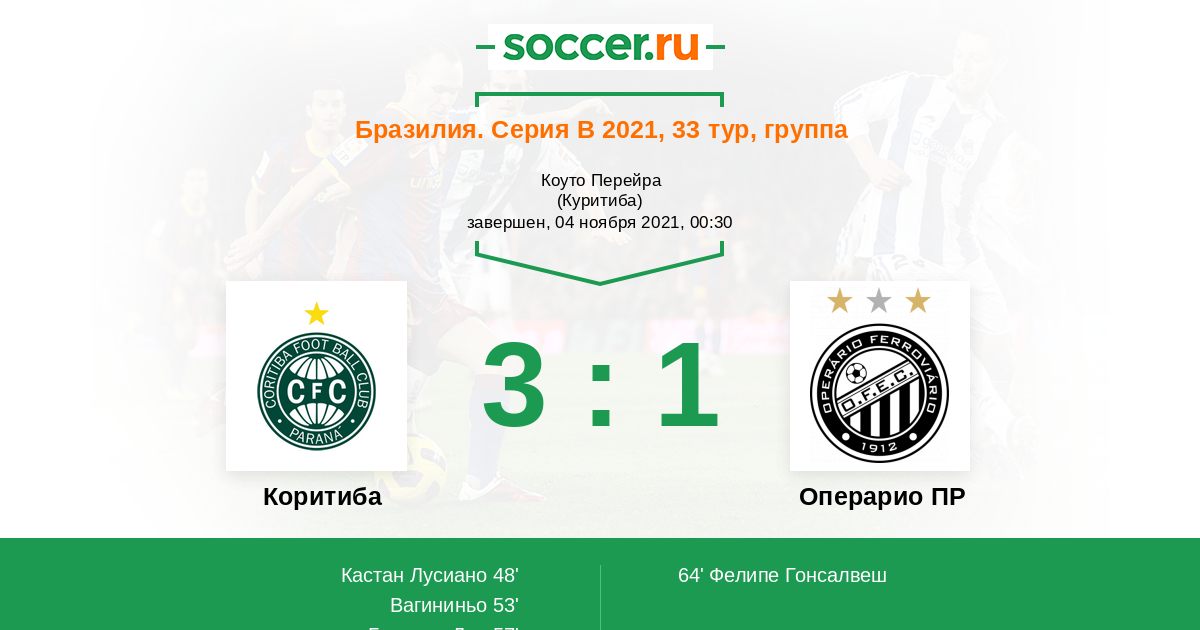 Протокол матча Коритиба против Операрио ПР