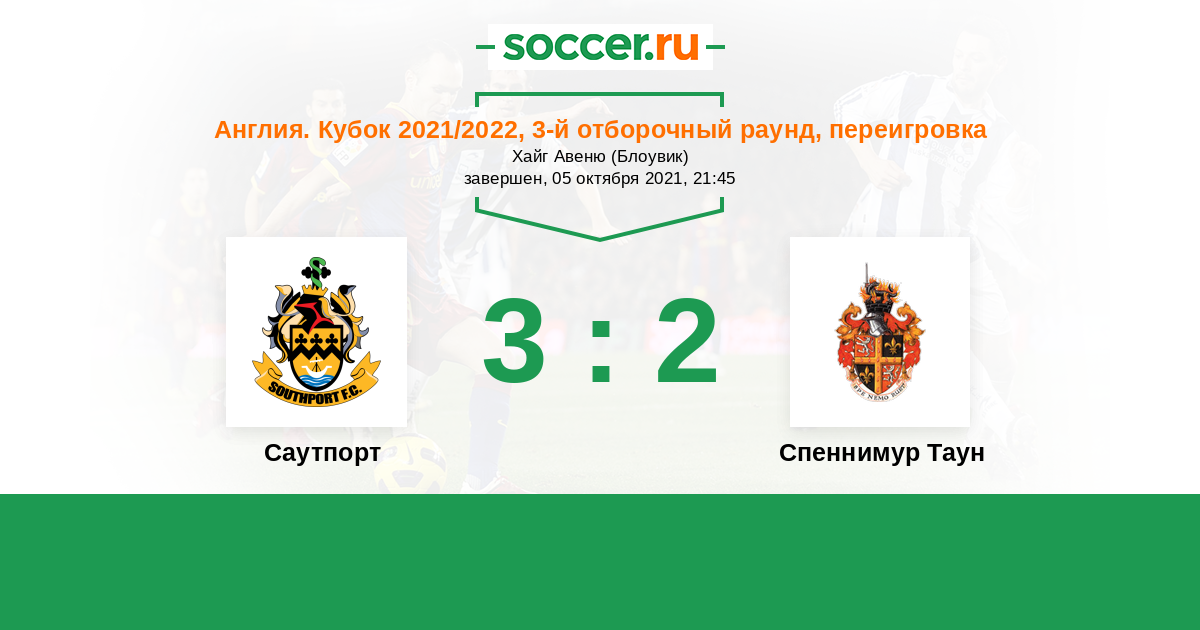 Англия. Кубок 02.10.2021 Спеннимур Таун Логотип футбольный клуб Спеннимур Таун 0:0 Логотип футбольный клуб Саутпорт Саутпорт