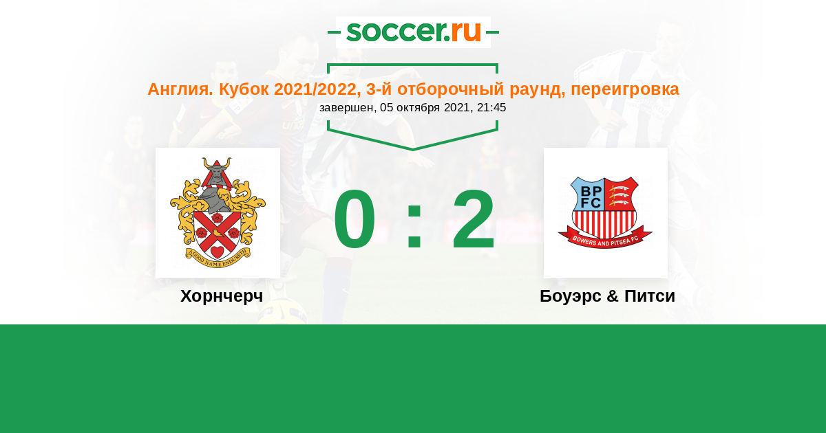 Англия. Кубок 02.10.2021 Боуэрс & Питси Логотип футбольный клуб Боуэрс & Питси 2:2 Логотип футбольный клуб Хорнчерч Хорнчерч