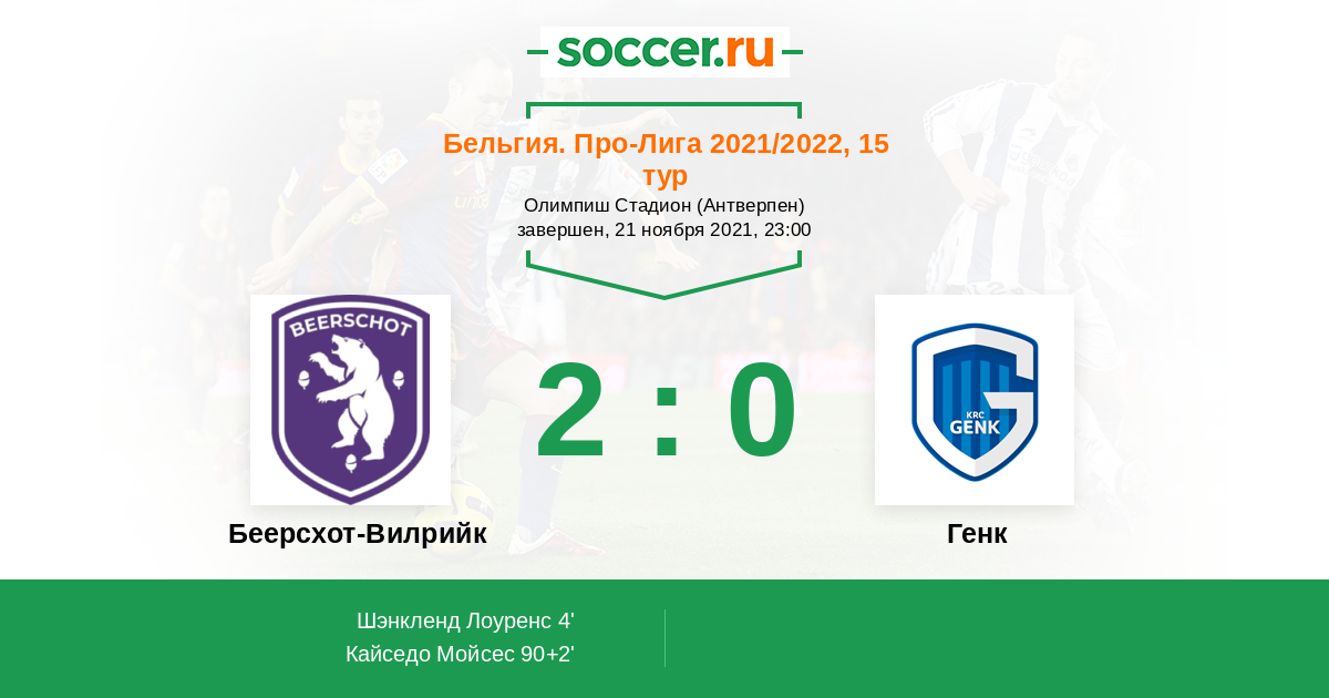 Протокол матча Беерсхот-Вилрийк против Генк