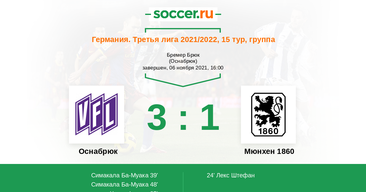 Протокол матча Оснабрюк против Мюнхен 1860