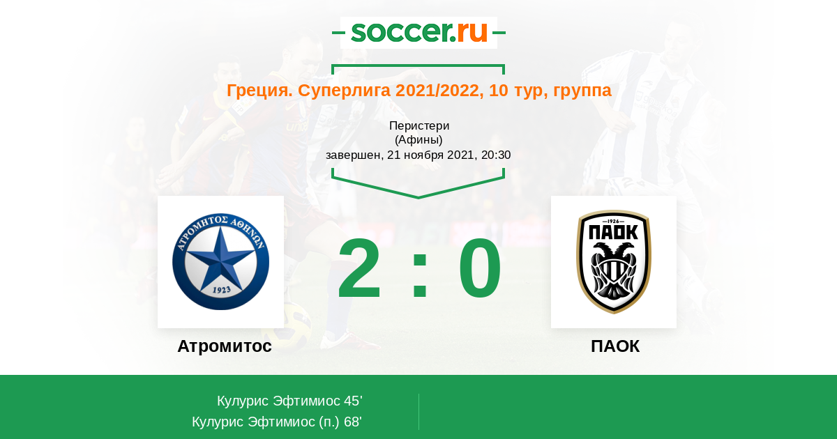 Протокол матча Атромитос против ПАОК