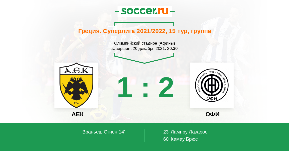 Протокол матча АЕК против ОФИ