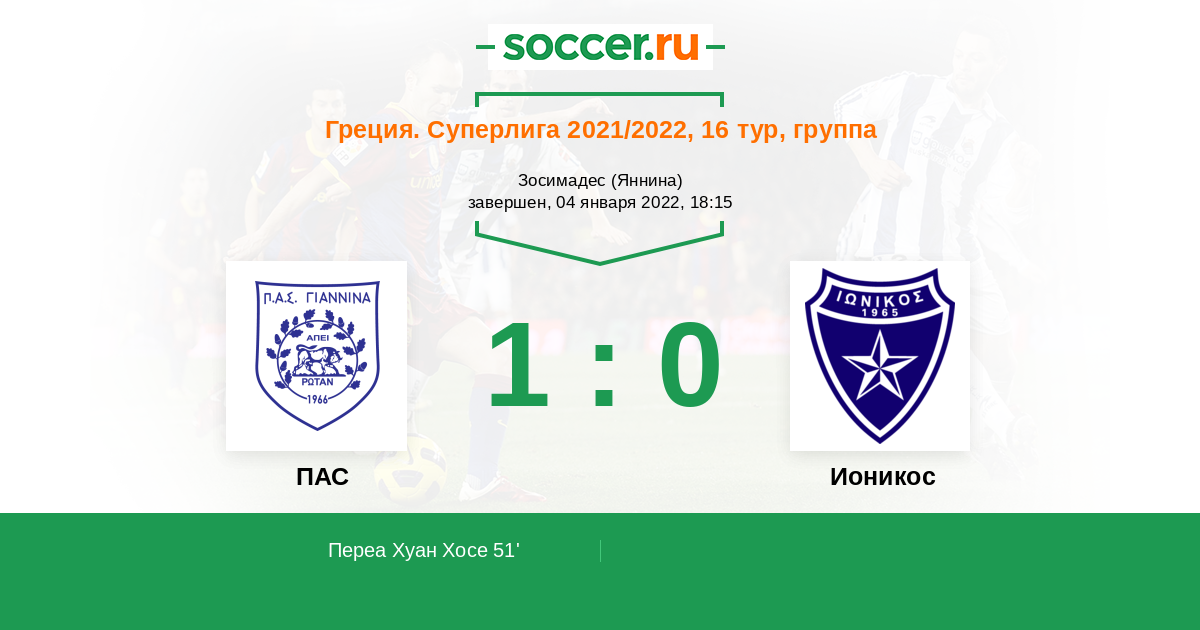 Протокол матча ПАС против Ионикос