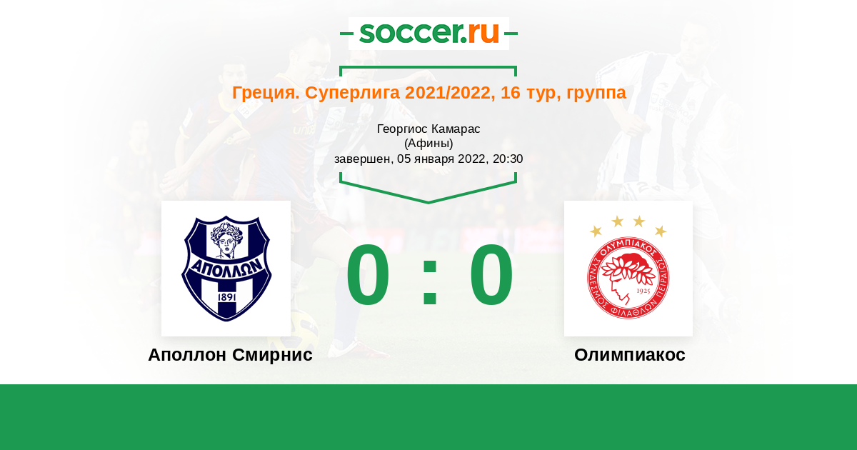 Протокол матча Аполлон Смирнис против Олимпиакос