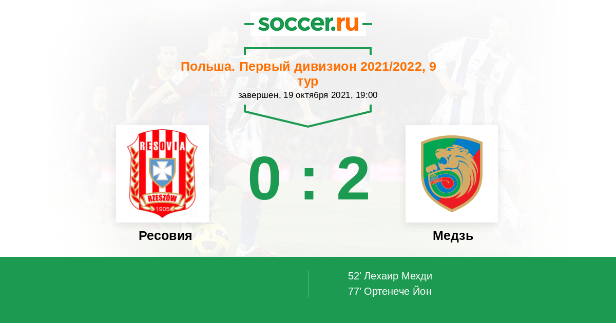 Протокол матча Ресовия против Медзь