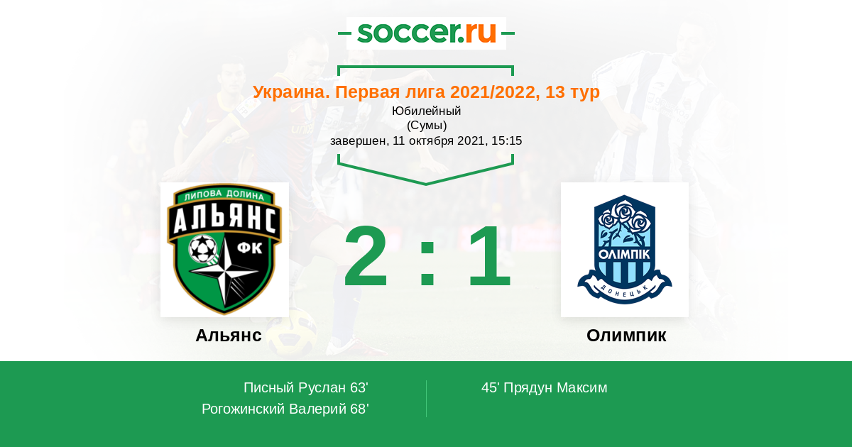 Протокол матча Альянс против Олимпик