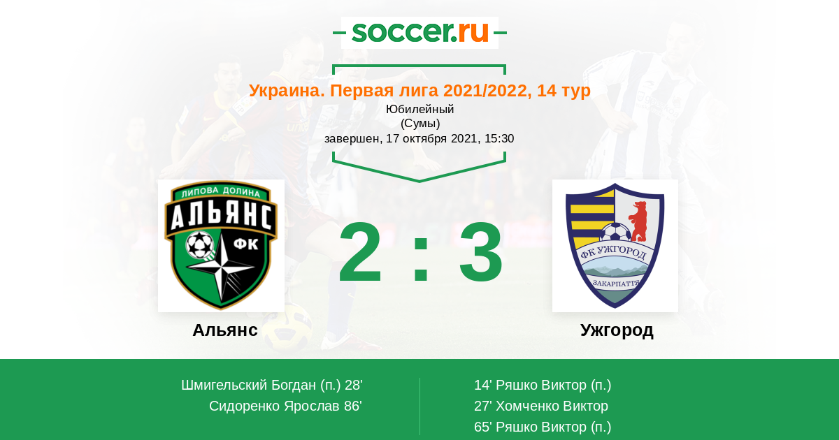 Протокол матча Альянс против Ужгород