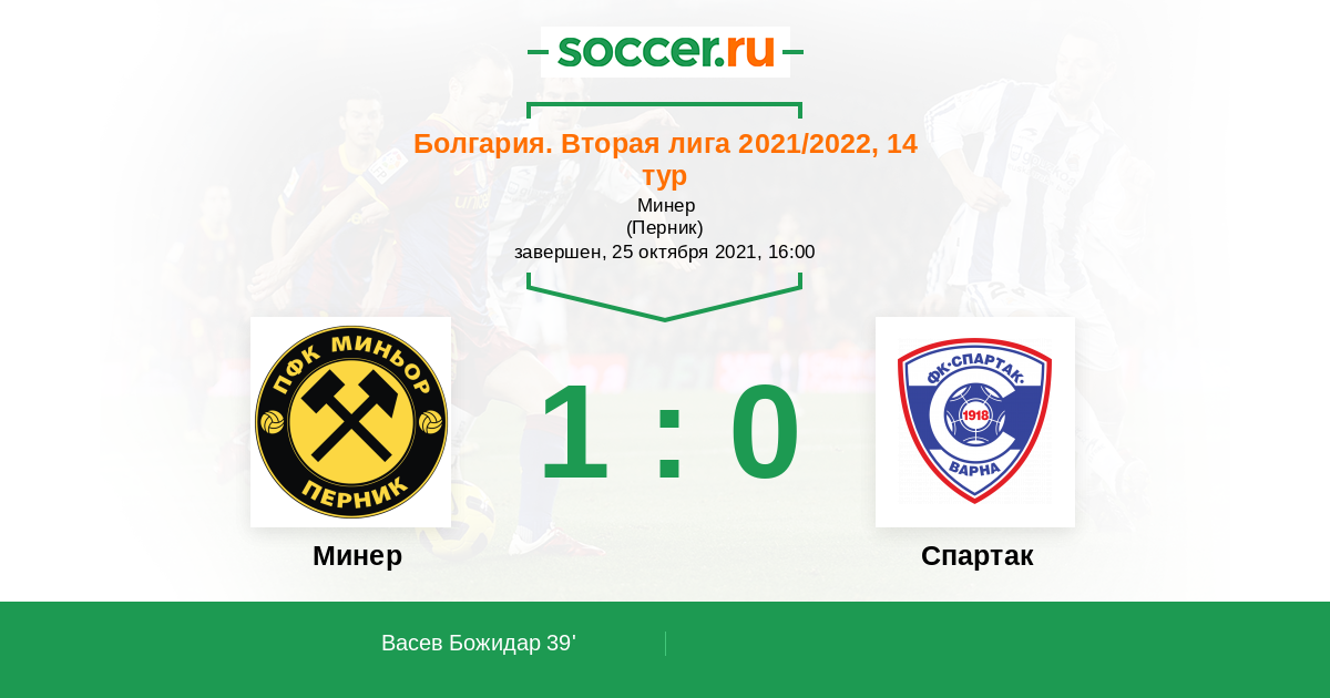 Протокол матча Минер против Спартак