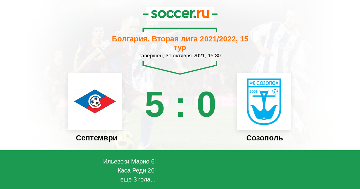 Протокол матча Септември против Созополь