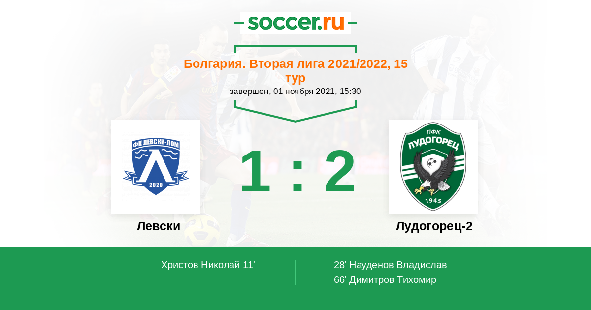 Протокол матча Левски против Лудогорец-2