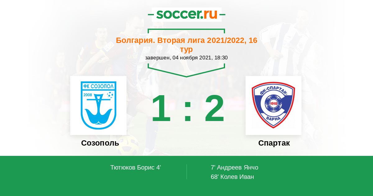 Протокол матча Созополь против Спартак