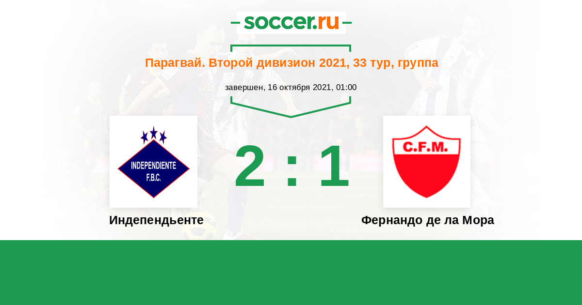 Парагвай. Второй дивизион 10.09.2016 Фернандо де ла Мора Логотип футбольный клуб Фернандо де ла Мора 2:1 Логотип футбольный клуб Индепендьенте (Луке) Индепендьенте