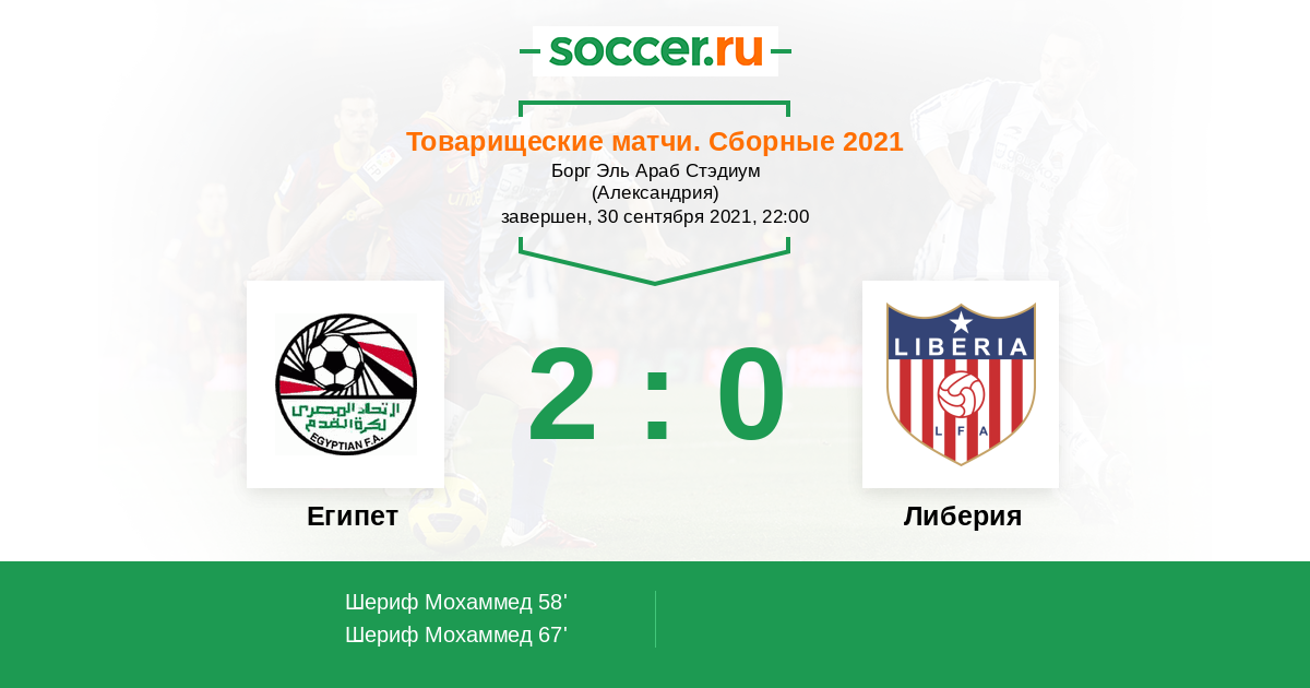 Протокол матча Египет против Либерия