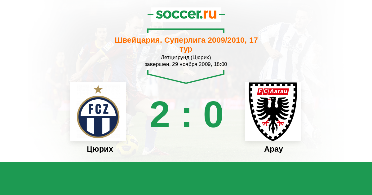 Швейцария. Суперлига 17.04.2010 Цюрих Логотип футбольный клуб Цюрих 0:1 Логотип футбольный клуб Арау Арау