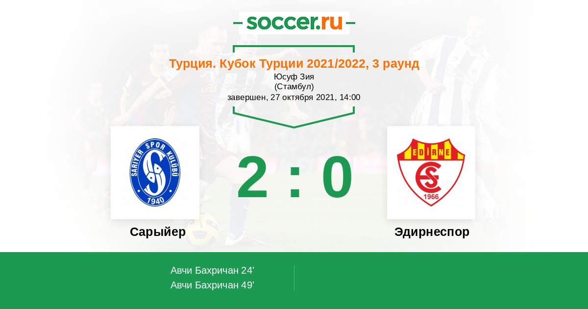 Протокол матча Сарыйер против Эдирнеспор