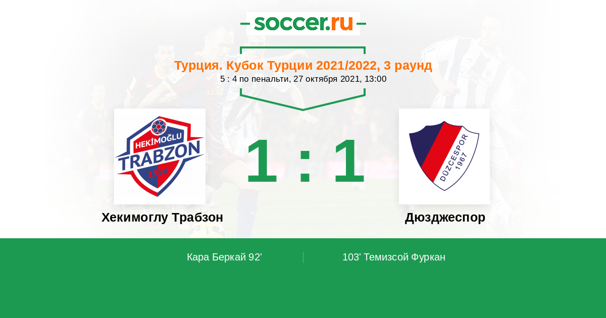 Протокол матча Хекимоглу Трабзон против Дюзджеспор