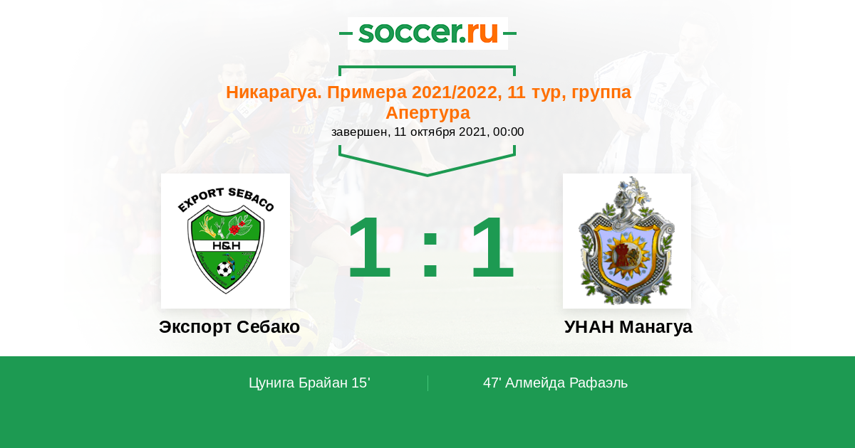 Протокол матча Экспорт Себако против УНАН Манагуа