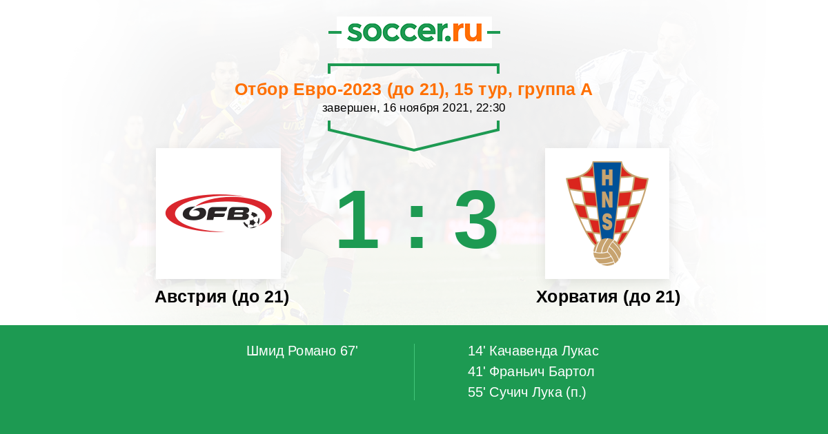 Протокол матча Австрия (до 21) против Хорватия (до 21)