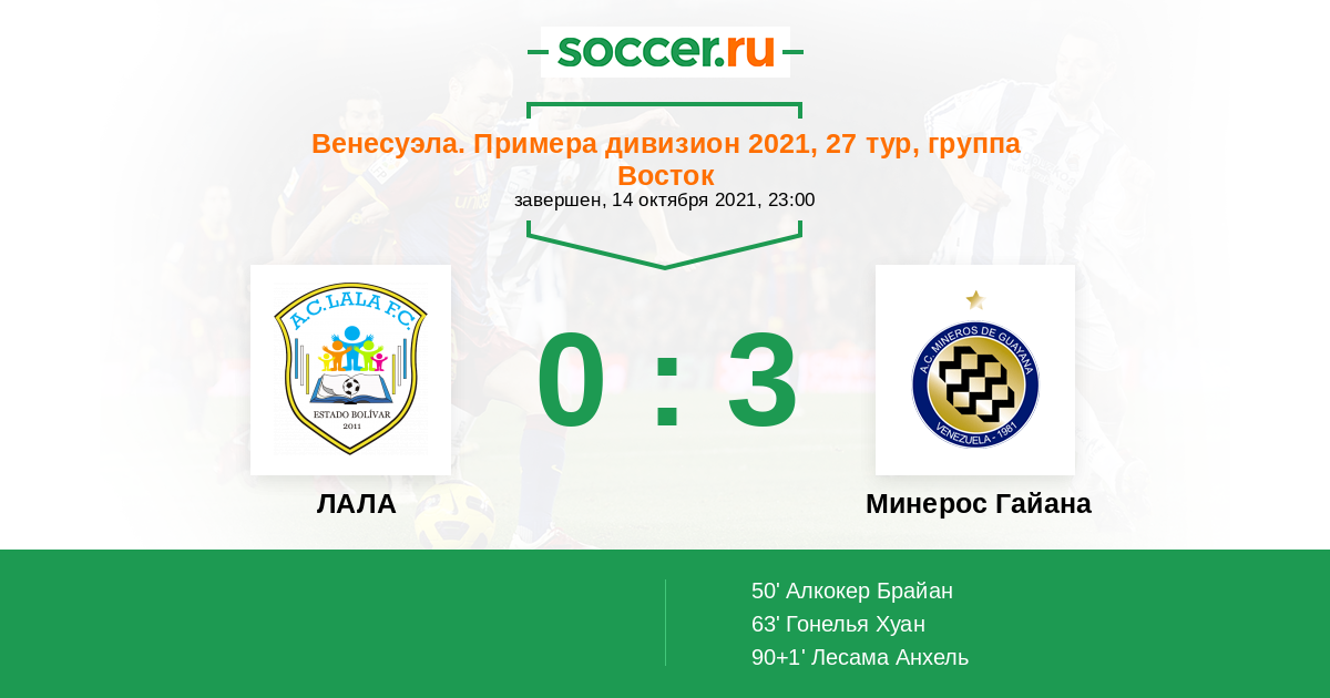 Протокол матча ЛАЛА против Минерос Гайана