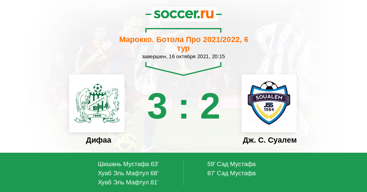 Протокол матча Дифаа против Дж. С. Суалем
