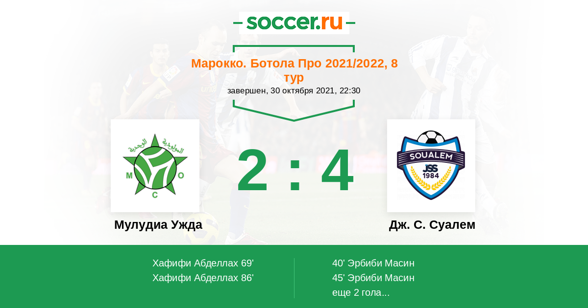 Протокол матча Мулудиа Ужда против Дж. С. Суалем