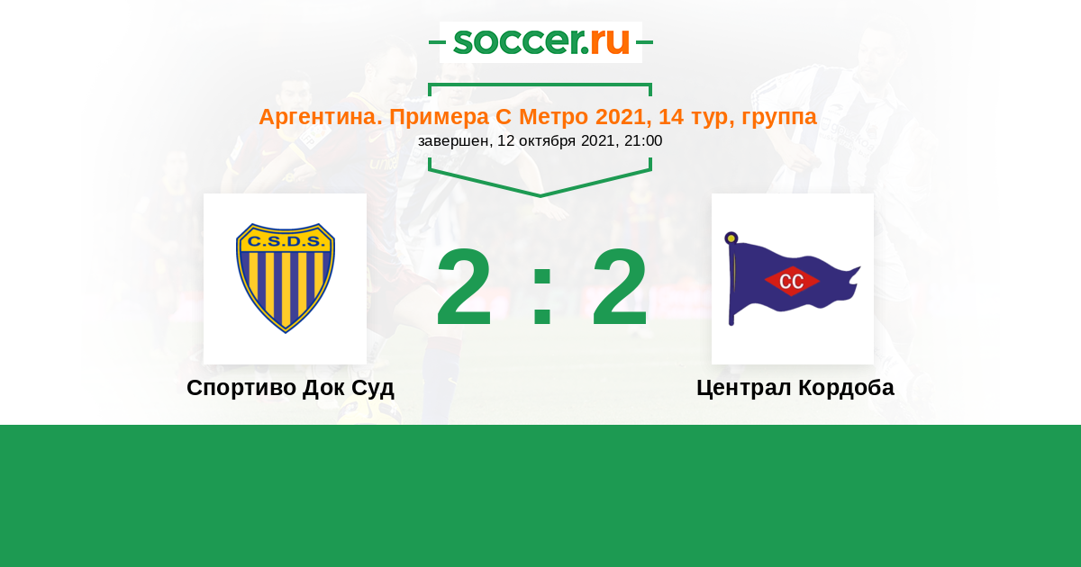 Аргентина. Примера С Метро 16.06.2021 Централ Кордоба Логотип футбольный клуб Централ Кордоба 0:0 Логотип футбольный клуб Спортиво Док Суд (Буэнос-Айрес) Спортиво Док Суд