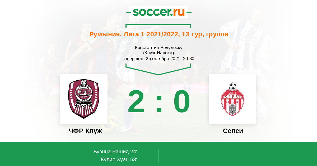 Протокол матча ЧФР Клуж против Сепси