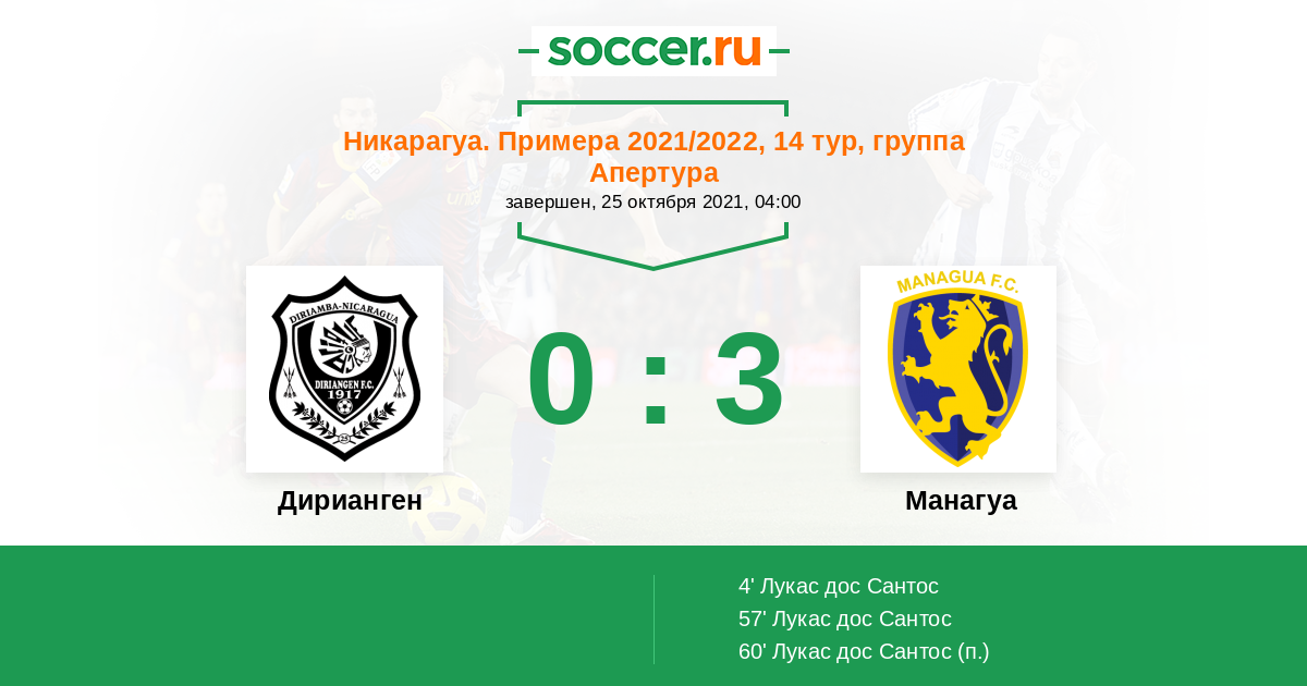 Протокол матча Дирианген против Манагуа