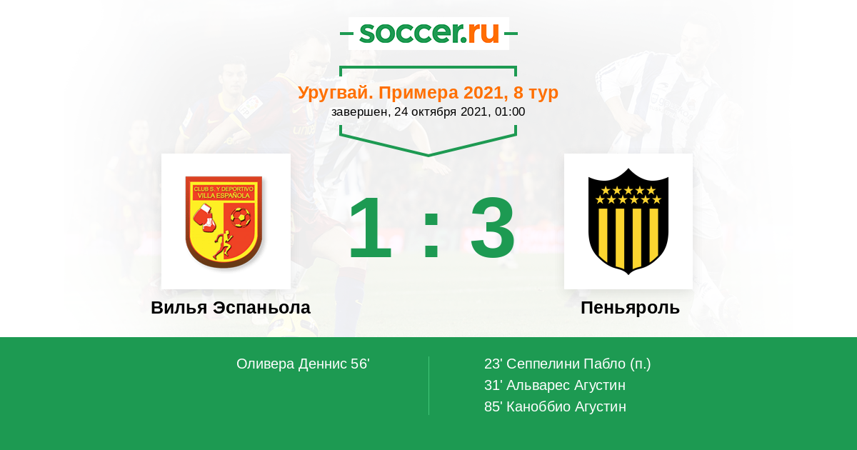 Протокол матча Вилья Эспаньола против Пеньяроль