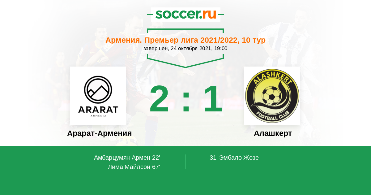 Протокол матча Арарат-Армения против Алашкерт