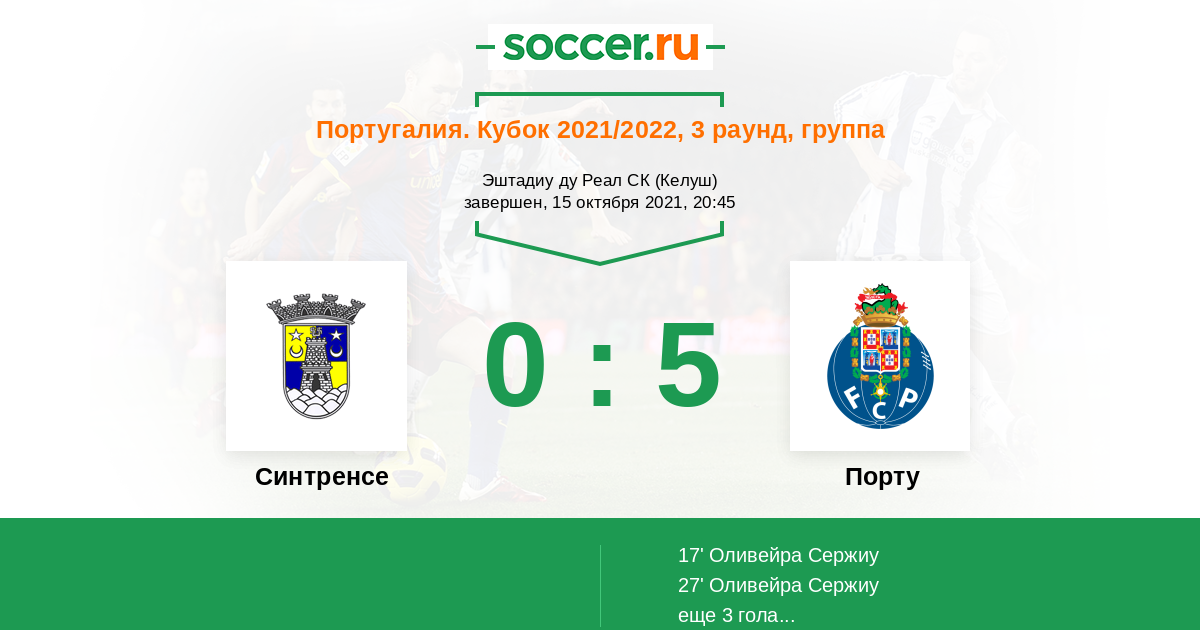 Протокол матча Синтренсе против Порту