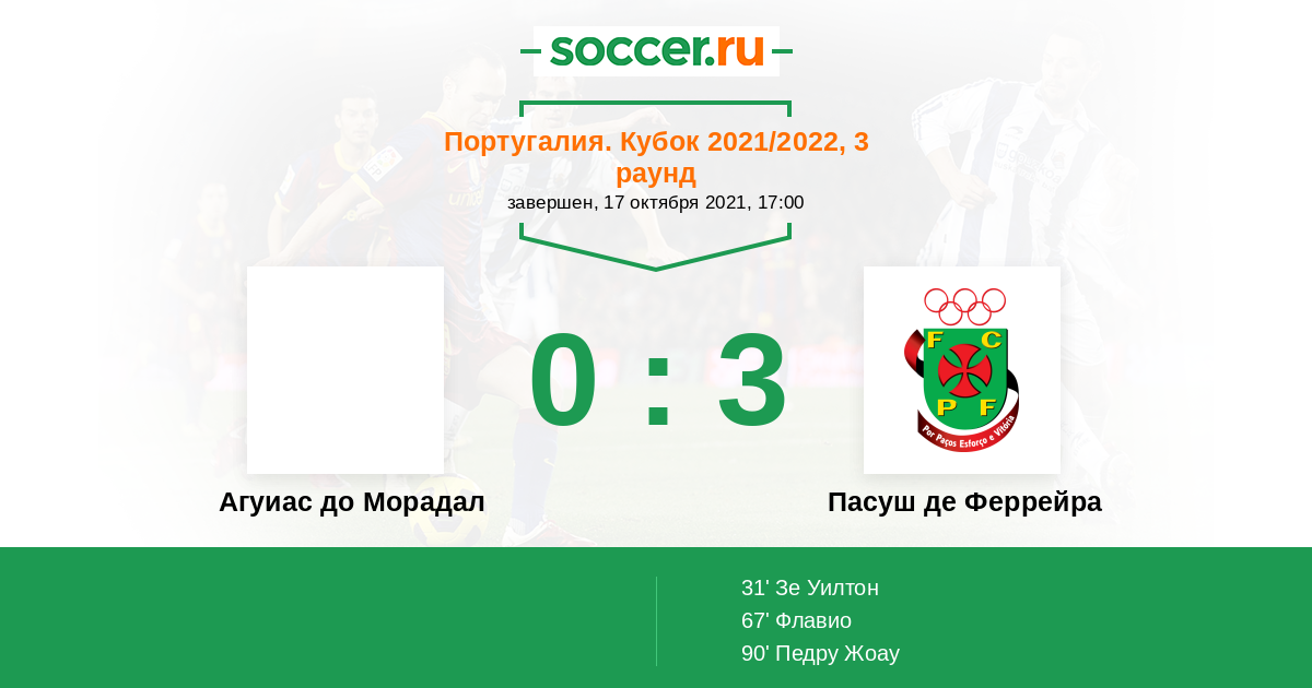 Протокол матча Агуиас до Морадал против Пасуш де Феррейра