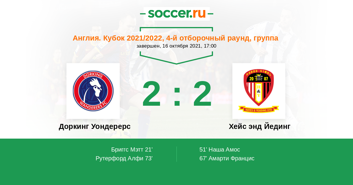 Протокол матча Доркинг Уондерерс против Хейс энд Йединг