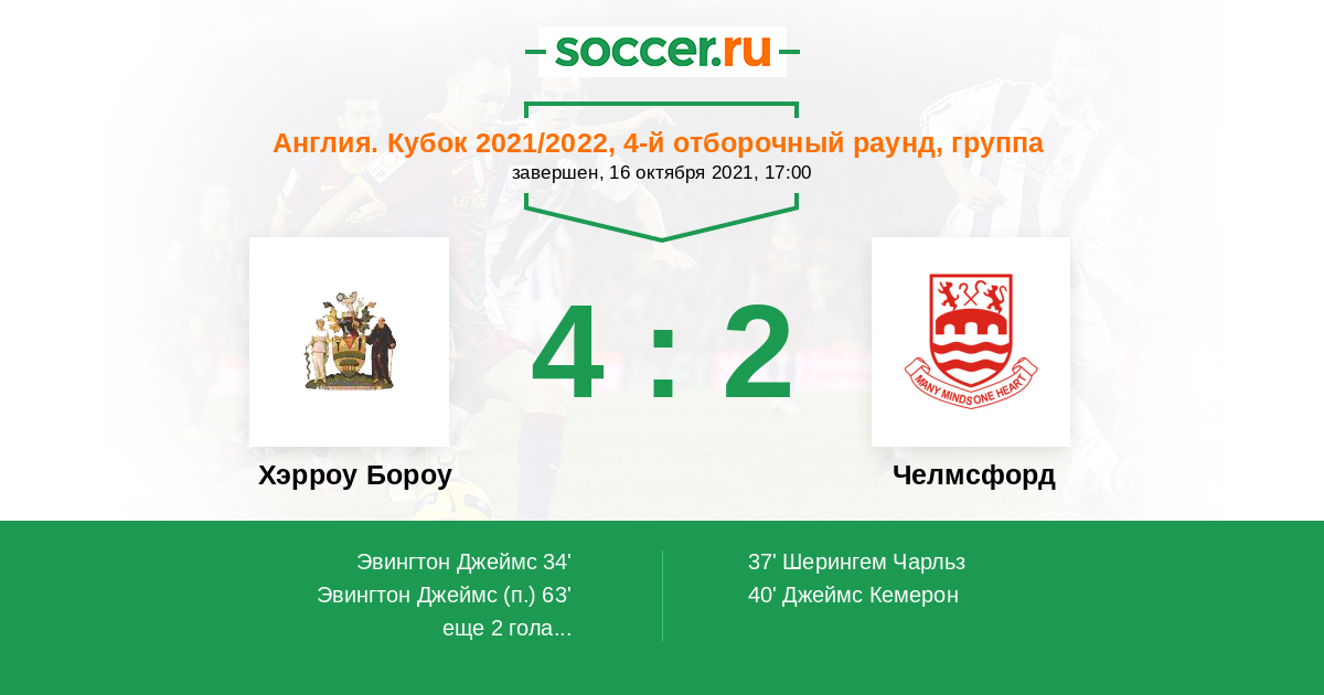 Протокол матча Хэрроу Бороу против Челмсфорд